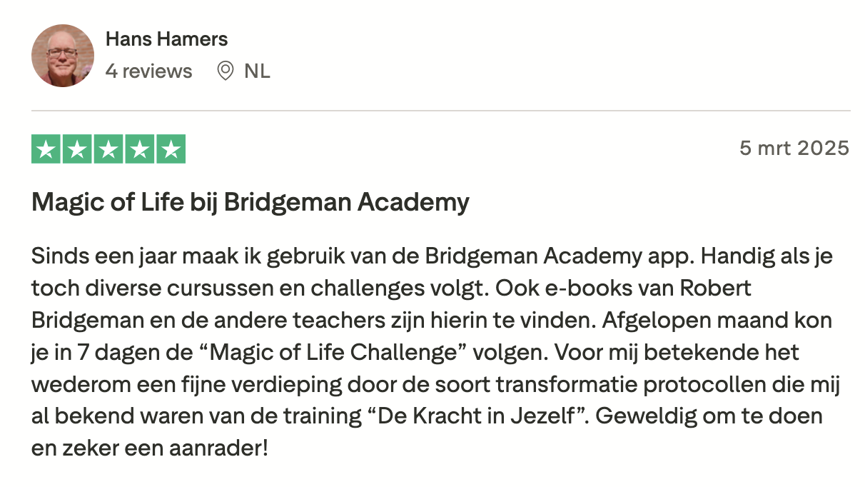 Het is gebaseerd op zestien jaar ervaring en meer dan 5000 sessies van Robert Bridgeman. Tijdens dit webinar krijg je niet alleen uitleg, maar ook een live ervaring van de methode zelf.