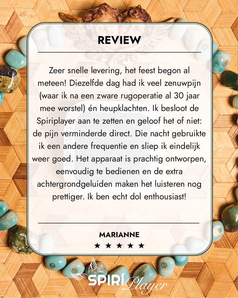 Zo profiteer je van begeleide audio’s die perfect aansluiten op de frequenties in de Spiriplayer. Ze helpen je niet alleen te luisteren, maar ook écht te zakken in ontspanning, bewustzijn en heling.