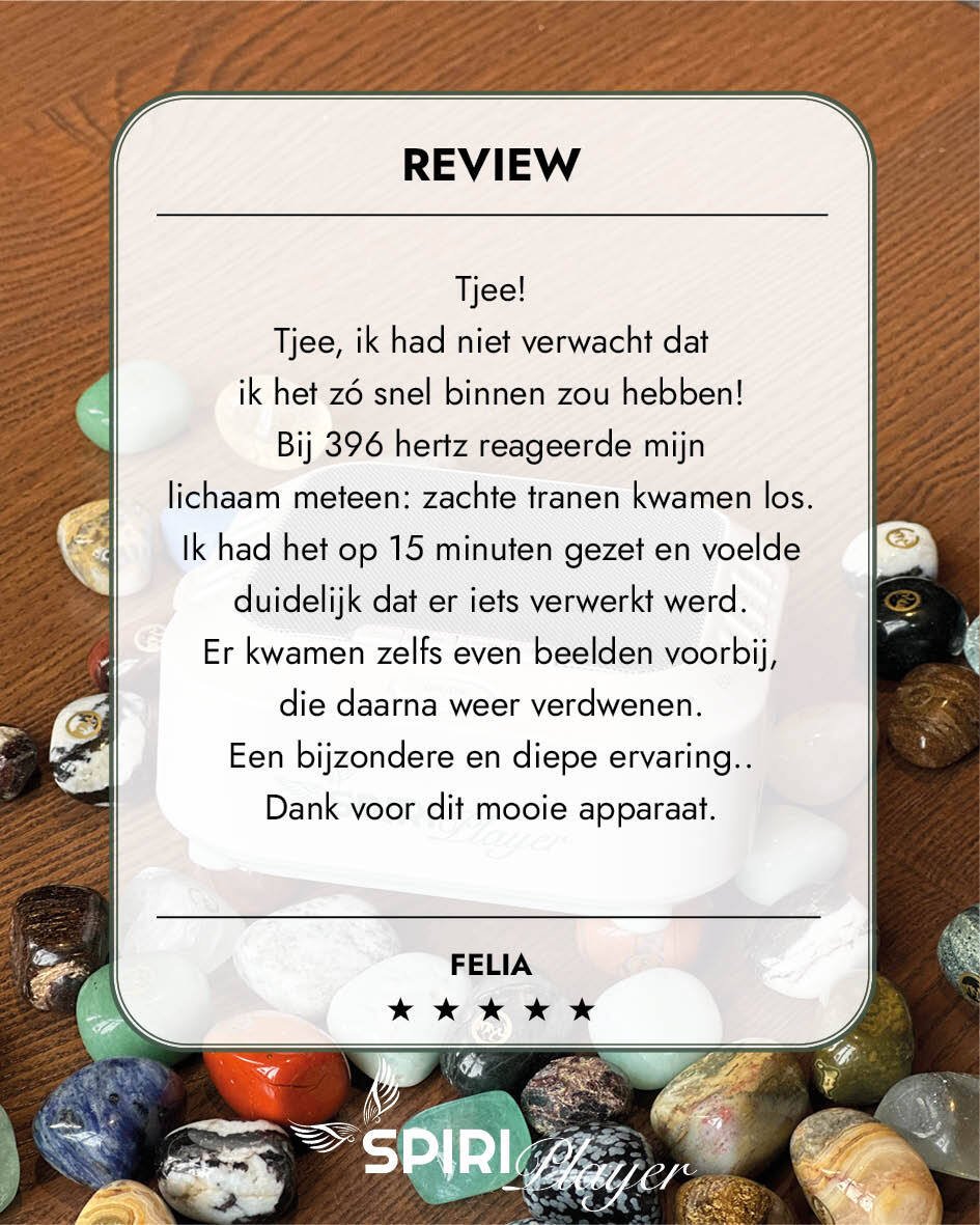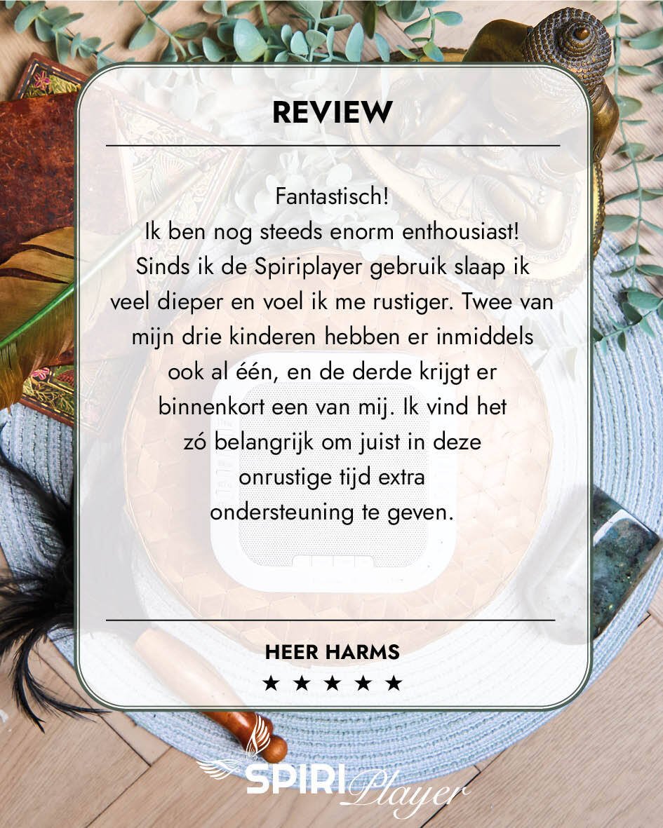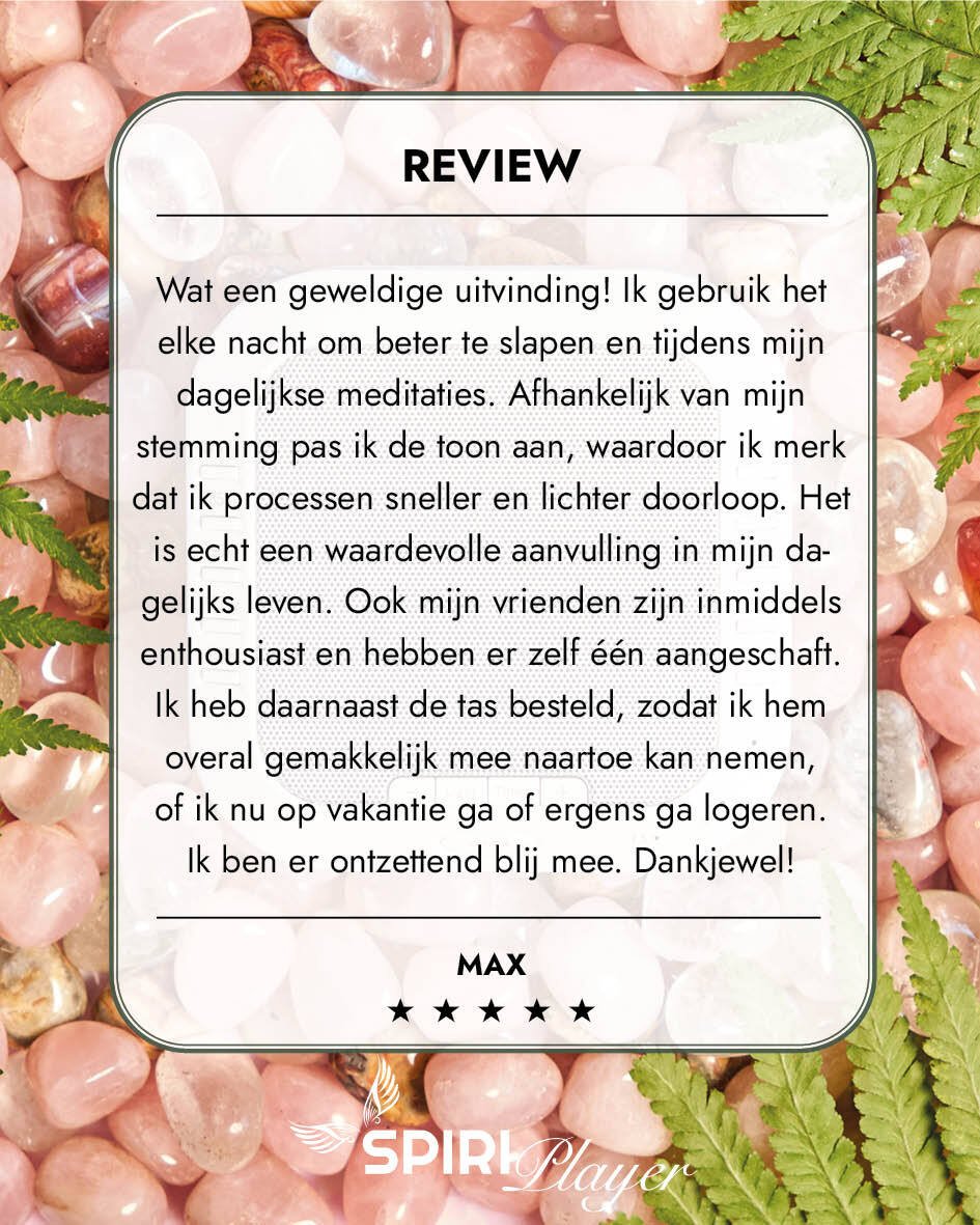 De Spiriplayer is een speciaal ontworpen apparaat dat zuivere, fysieke frequenties uitzendt, los van je telefoon of scherm. Daardoor heeft het een diepere werking zonder afleiding. Bovendien bevat het ook een zacht nachtlampje dat melatonine aanmaakt en helpt ontspannen.