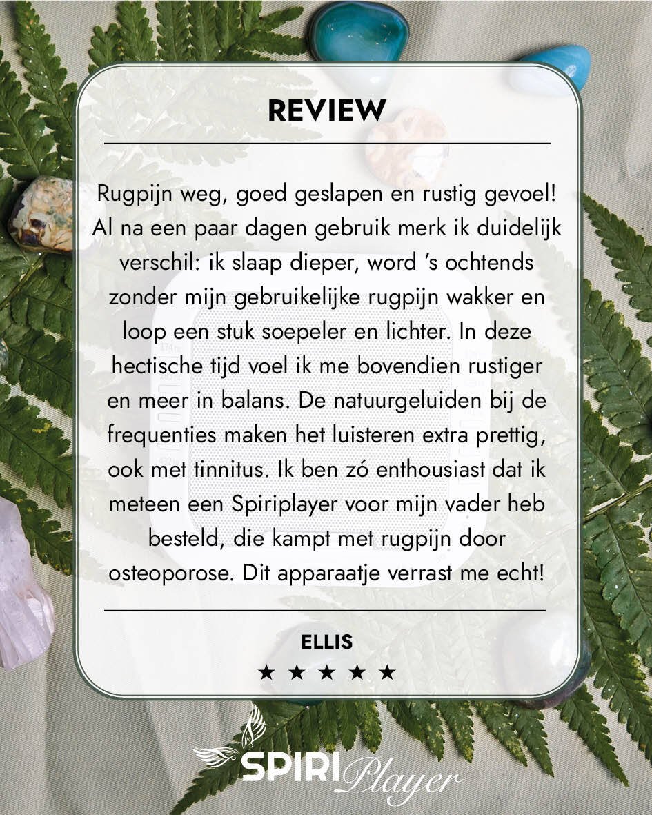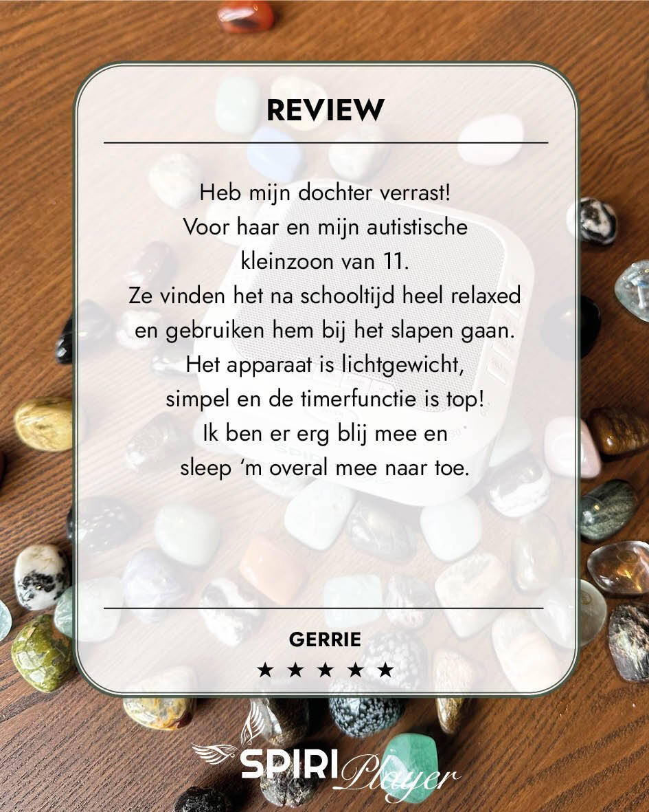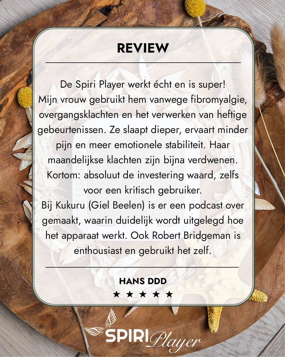 De Spiriplayer is een speciaal ontworpen apparaat dat zuivere, fysieke frequenties uitzendt, los van je telefoon of scherm. Daardoor heeft het een diepere werking zonder afleiding. Bovendien bevat het ook een zacht nachtlampje dat melatonine aanmaakt en helpt ontspannen.